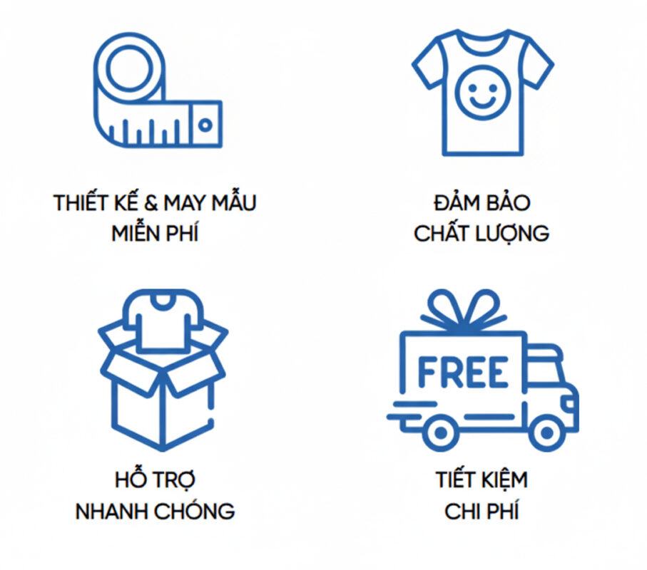 chúng tôi cung cấp trọn gói từ thiết kế – may đo – in/thêu đến kiểm tra chất lượng, đóng gói và giao hàng tận nơi.